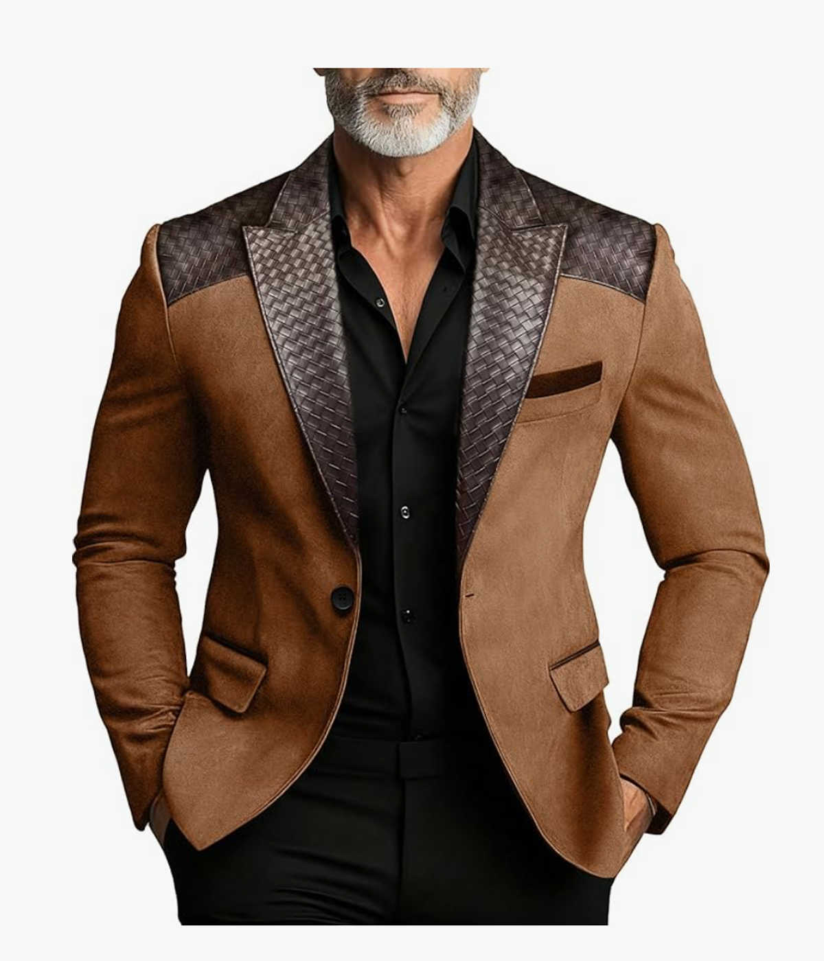 Vintage Suede Blazer with Leather-Textured Trim