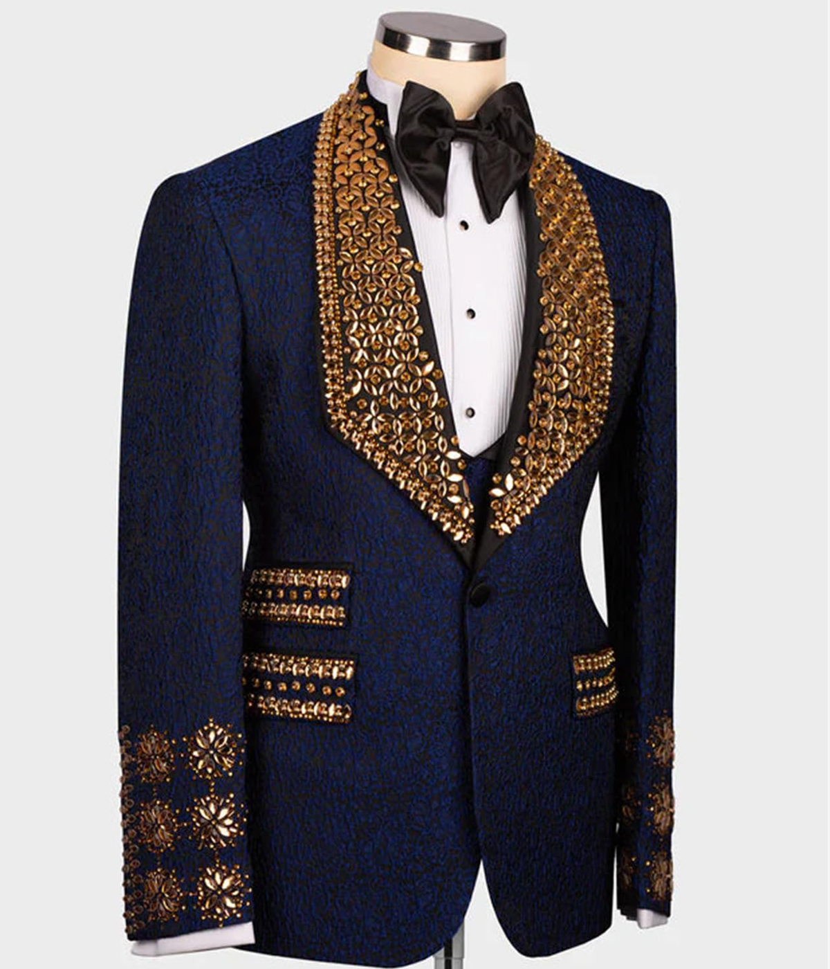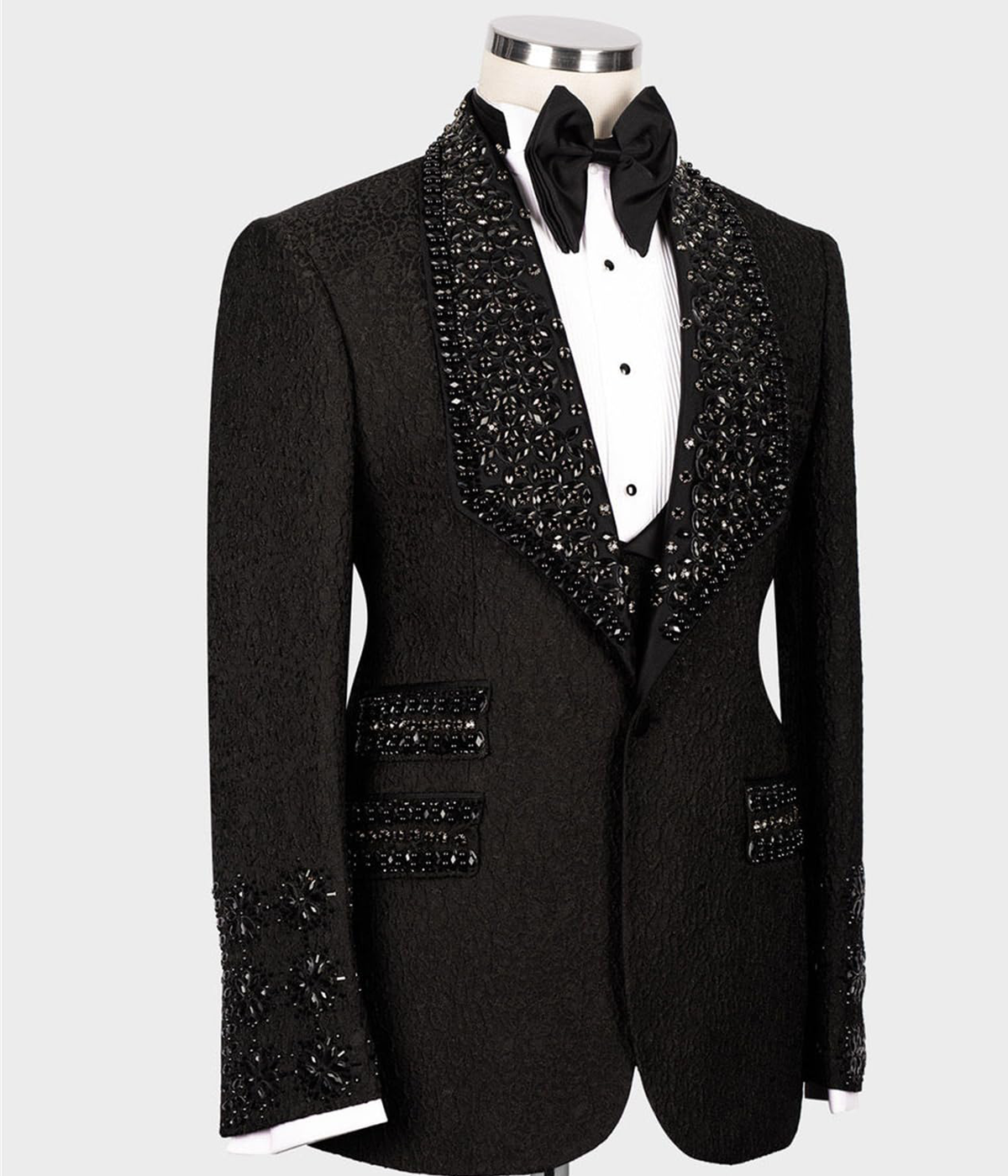 Handmade Rhinestone Jacquard Tuxedo Blazer